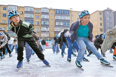 绚烂冬日里,辽宁省辽阳市第一中学西藏班学生走出教室,到操场滑冰。辽阳一中在西藏班开设速度滑冰课程,“零基础”的西藏班学生们从摔倒到站起,从胆怯到自信,突破自我,充分感受着冰雪运动带来的快乐。