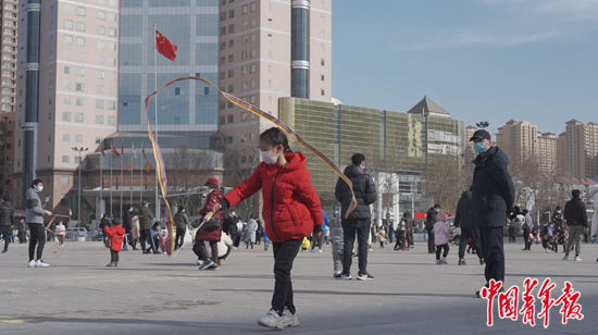 1月30日,河北省石家庄市,一个小朋友在河北博物馆广场上玩耍。1月29日,石家庄市政府出台关于落实《石家庄市疫情防控指挥部通告》的具体措施,低风险区实行常态化疫情防控,全面恢复正常生产生活秩序。藁城区、新乐市等高风险区域执行现行管控措施。中青报·中青网见习记者 鲁冲/摄