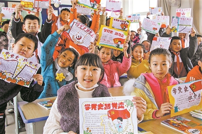 | 2月28日,山东淄博淄川经济开发区西山联校小学生在展示学党史跟党走手绘画。 翟慎安 李家宾 许丽萍 摄 |