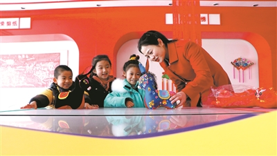 | 讲解员为小朋友介绍当地的刺绣等红色文化。本报记者 尹晓军 摄 |