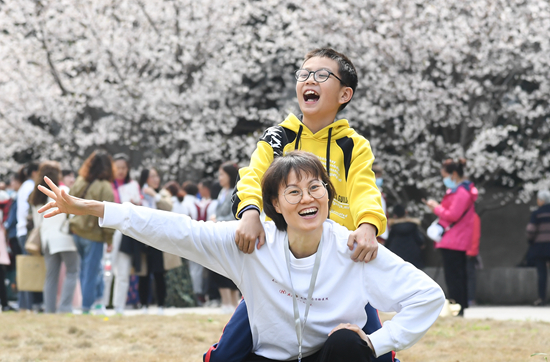 樱花盛放之日,英雄归来之时。3月13日,武汉大学“致敬抗疫英雄赏樱专场”活动正式开启。来自江苏、上海、广东、湖南等省市的1.2万余名抗疫医护人员携家属来到珞珈山,共赴樱花之约。