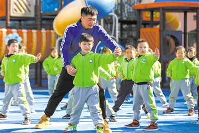 -近日,浙江省湖州市长兴县机关幼儿园的孩子们在教师辅导下练习传统武术。该园优化课间活动,通过武术健身操、武术基本功练习等活动传承传统文化,引导孩子们磨炼意志、增强体质。许斌华 摄