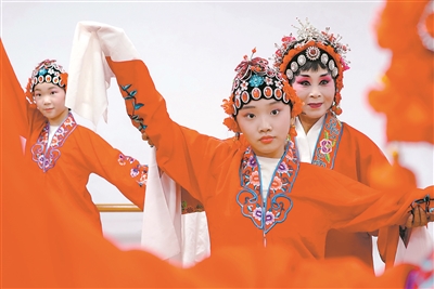 暑假期间,河北省邢台市内丘县文化馆举办舞蹈、戏曲、剪纸等公益培训,丰富孩子们的假期生活。图为老师给孩子们指导戏曲动作。刘继东 摄