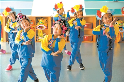 广州市番禺区北城幼儿园的孩子们开展粤剧活动的情景。(资料图片)
