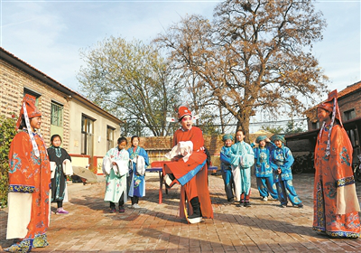11月13日,河北省益民河北梆子剧团的演员在沧县西官庄小学为学生讲解戏曲动作。近年来,当地积极开展戏曲文化进校园活动,辖区内多所中小学引入戏曲课程,以戏曲展演、戏曲名家进课堂、戏曲社团交流等形式,让学生增进对中国传统文化的了解。 新华社记者 牟宇 摄