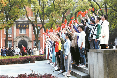 近日,湖南大学师生在该校东方红广场唱响融入了经典歌曲《东方红》的《浏阳河》。蒋鼎邦摄