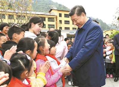 习近平指出,“两不愁三保障”,很重要的一条就是义务教育要有保障。再苦不能苦孩子,再穷不能穷教育。要保证贫困山区的孩子上学受教育,有一个幸福快乐的童年。