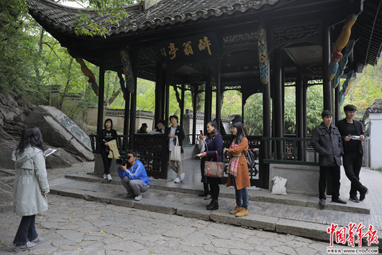 10月19日,安徽省琅琊山景区,“皖约”考察团师生们在醉翁亭游览。中国青年报·中青在线记者 李隽辉/摄