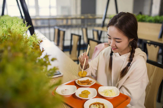 为了践行“光盘行动”,北京航空航天大学推出半价小份菜,学生购买适合自己的菜量,有效避免了食物浪费。北京航空航天大学供图
