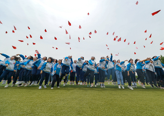 5月26日,鸡泽县第一中学的高三学生将写有自己梦想的纸飞机抛向空中。高考临近,河北省邯郸市鸡泽县第一中学开展形式多样的趣味减压活动,帮助学生释放身心压力,以轻松乐观的心态迎接高考。新华社记者 王晓/摄