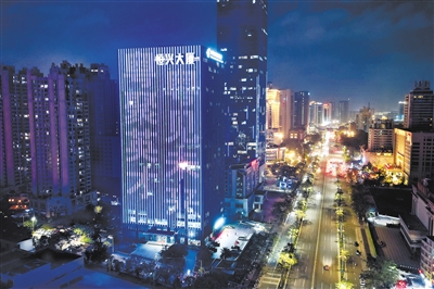 12月19日晚,湛江经开区恒兴大厦外立面大屏亮起“百万英才汇南粤”秋季大型综合招聘会主题灯光,为即将于12月27日至28日在深圳会展中心举办的秋季大型综合招聘会预热。