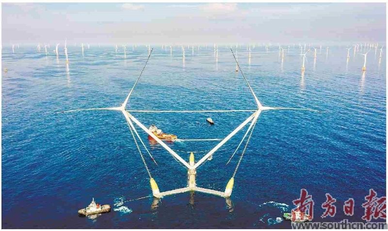 12月11日,全球单体容量最大的漂浮式风电平台“明阳天成号”在广东阳江正式投运。“明阳天成号”排水总量约1.5万吨,投运于离岸约70公里、水深约45米的明阳阳江青洲四海上风电场,预计每年可提供约5400万度绿色电力,能满足3万户三口之家一年的日常用电需求。