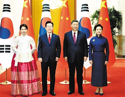 习近平向韩国人民致以诚挚新年祝福。习近平指出,我和李在明总统已两次见面并实现互访,体现了双方对中韩关系的重视。作为朋友和邻居,中韩应该多走动、常来往、勤沟通。中方始终将中韩关系置于周边外交重要位置,对韩政策保持连续性、稳定性。中方愿同韩方一道,牢牢把握友好合作方向,秉持互利共赢宗旨,推动中韩战略合作伙伴关系沿着健康轨道迈进,切实增进两国人民福祉,为地区乃至世界和平与发展正向赋能。