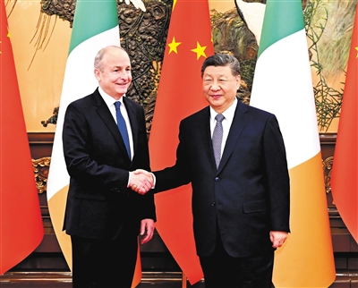 习近平指出,当今世界变乱交织,单边霸凌行径严重冲击国际秩序。各国都应尊重他国人民自主选择的发展道路,遵守国际法及联合国宪章宗旨和原则,大国尤应带头。中国和爱尔兰都支持多边主义,倡导国际公平正义,要在国际事务中加强协调合作,共同维护联合国权威,推动全球治理体系朝着更加公正合理的方向发展。中欧双方要着眼长远,坚持伙伴关系定位,客观理性看待和处理分歧,坚持合作共赢。爱尔兰下半年将担任欧盟轮值主席国,希望为中欧关系健康稳定发展发挥建设性作用。