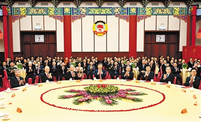 在京中共中央政治局委员、中央书记处书记,全国人大常委会、国务院部分领导同志,全国政协领导同志和曾任全国政协副主席的在京老同志出席茶话会。