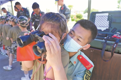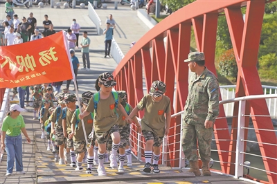 日前,安徽省安庆市迎江区墨子巷幼儿园新宜分部开展了以“喜迎二十大,争当小小兵”为主题的国防教育系列活动。幼儿园组织孩子们参观部队,并邀请官兵到园指导孩子们开展拉练、整理内务等项目,让“爱党、爱国、爱家乡”的种子在孩子们心中生根发芽。张艳 摄
