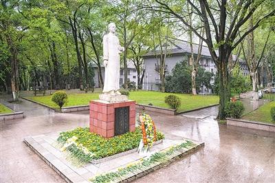 华中师范大学校园里的恽代英雕像。学校供图 |