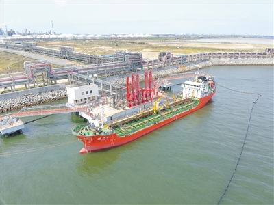 港口是中科炼化项目核心物流枢纽,该公司通过“前港后厂”模式实现了高效生产与运输协同,直接保障了原料进口与成品出口的连续性。时针回拨至2020年5月8日,来自中东的超大型油轮“凯名”轮安全靠泊中国石化中科炼化港口30万吨级原油码头并顺利接卸,标志着中科炼化港口正式建成投用。随着2020年6月首套炼油生产装置投产,中科炼化如同被注入能量的“石化巨人”,五年间,中科炼化港口累计接卸船舶2000余艘次,货物吞吐量已突破4000万吨大关,其中装卸原油约2800万吨,装卸煤超500万吨,形成“原油—成品油—化工原料”产业链运输体系。