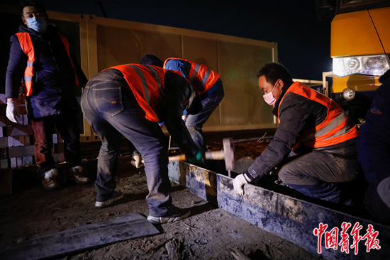 材料来了,张宗奎他们马上开始卸车、组装。刘杰和同事则“啥都干”,清理杂草垃圾、测量放线,他还置过模板,绑扎过钢筋,浇筑过混凝土。因为工期紧、工人数量少,这项工程建设初期,大多数参与者都上手了“以前没干过的活儿”。