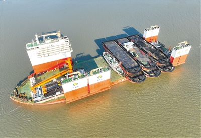 3月3日,全球第三大半潜船“华瑞龙”在福建宁德灶屿水域装载13艘船舶启航前往非洲几内亚。本次装载的13艘船舶分别为6艘平板驳船、5艘拖船、1艘浮吊船和1艘供应船。该批船舶预计将于四月中旬运抵目的地。