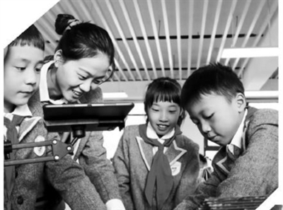 | 湖南省长沙市天心区仰天湖实验学校教师指导学生拍摄定格动画。 |