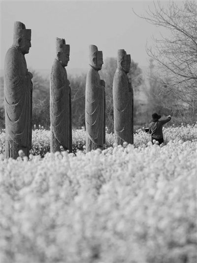 关于“宋陵麦收”的由来,徐馨表示,独特景观并非偶然形成。宋陵所在的这片土地在历史上长期作为官地管理。1915年当地人创办职业学校,开始将宋陵土地出租,用以集资办学。随着土地开垦,陵区逐渐与耕地融为一体。2021年6月起,宋陵核心区3160亩耕地进行流转,交由巩义市供销社统一经营,负责宋陵麦田的耕作与收获,统一管理分散的田地,避免破坏文物。除了“麦田里的守望者”,还有不少石像生散落在巩义的各个角落——市区街头、公园、村庄、郊野、山岗,每座石像生都有独特之处:永昌陵内的大耳朵将军、萌萌哒的石兽们、永泰陵内的石象、永熙陵内的石羊、太祖陵上的领头羊……近些年,陵区土地曾种植过油菜花、向日葵,每逢春夏季灿烂绽放,吸引大批游客和摄影师前来打卡。