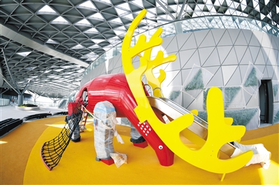 项目南侧的“欢乐湛江”广场是现阶段主要施工点。工人们正细致打磨UHPC(超高性能混凝土)座椅——这种融入海洋文化元素的新型材料兼具美观与耐久性,搭配定制艺术灯具的“欢乐湛江”广场,未来将成为市民休闲空间。值得关注的是,B馆北侧四层的儿童游乐区已完成设施安装,鲜艳灵动的造型设计,将为亲子家庭打造互动场所。