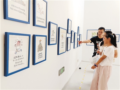 当天,市民游客被一幅幅漫画作品所吸引。这些漫画作品或是充满幽默感,或是充满人生哲理,触动人心。市民游客在观赏中放松心灵,寻找快乐源泉。