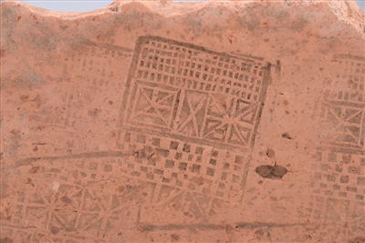 徐闻县二桥村南湾汉代村落遗址出土印纹砖,宽12.7厘米、厚3厘米,戳印粗方格纹。板瓦红色,厚14—1.8厘米,饰细绳纹;另一种板瓦红色,厚2.2厘米,饰粗绳纹。筒瓦有灰褐色的饰弦纹、绳纹,红色的饰绳纹、方格纹。