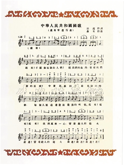 | | 1935年5月,《电通》画报刊登的《义勇军进行曲》。资料图片 |