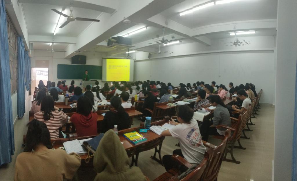 杨红的讲授从“国家的发展形势—国无德不兴”展开,阐述了教育事业坚持把立德树人作为根本任务的重要意义,并介绍了湛江经济社会发展的大好前景以及学校的发展定位、发展目标,鼓励同学们努力塑造良好品德,做好职业生涯规划,一二年级学好专业基础知识,提出每天听一小时、读一小时外语,每月读一本书的“三个一要求”;三四年级以提高实践能力、综合素质为主要目标,从考研、考证、海外实践、假期实践、各种赛事等实践、实训来提高综合素质和综合能力,以实际行动践行“崇德、博雅、宏志、信勇”校训精神及“做个好人,学好日语”日语系系训精神,争做新时代优秀大学生,为服务国家、服务湛江、服务学校贡献力量。