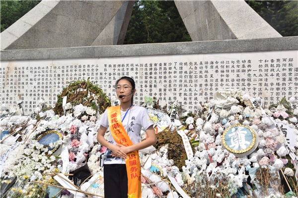 首先, 在主持人宣布扫墓活动正式开始后,历史讲解队的解说员们分别讲述了三个烈士的起义革命事迹,在她们慷慨激昂的话语中,同学们仿佛置身于那个战火纷飞的年代,成为新中国崛起而挥洒热血的一员。