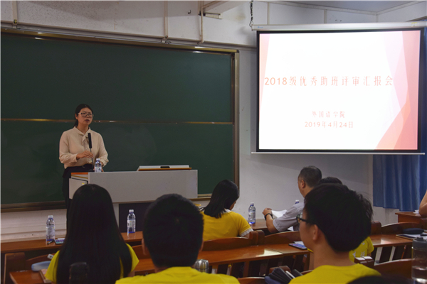 4月25日下午,外国语学院在教三501教室成功举办了2018级优秀助班评审汇报会。本次会议由2018级辅导员罗成燕老师主持,陈韵桥老师、杨进军老师、陈理才老师出席,2018级全体助班以及感兴趣的同学参与。