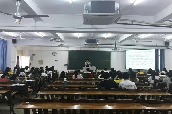 紧接着,在毕业论文的写作方法与技巧的角度上,杨红老师将论文分为十个组成部分依次向在场学生介绍。首先,必须注意题目范围的选取与确定,论文的研究领域。其次是论文的内容和结构以及关键词及引用的文献等,都进行了详细的讲解。最后是论文的结论部分,强调个别论,写出新意,不提倡一般论。