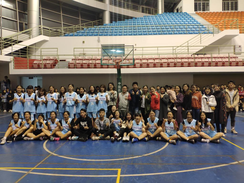 最后,比赛以18:28的比分结束,外语院女子篮球队取得了第二名的好成绩。外语院的队员与法政院的队员相互握手致意,展现出外语院与法政院的友谊。此外,外语院篮球队队员也向在场的篮球裁判和到场观看比赛的老师和同学鞠躬表示感谢。离场之际,梁副书记、张勤涛老师和队员们合影留念。