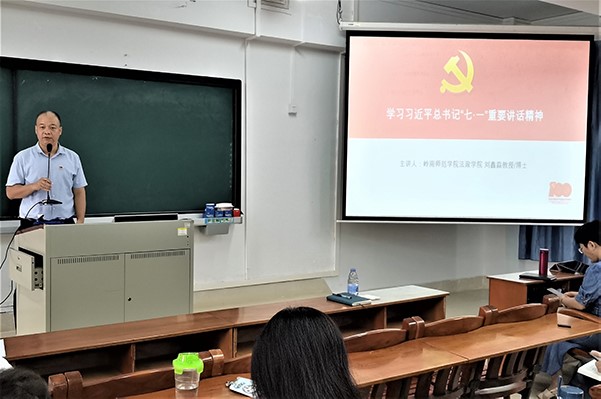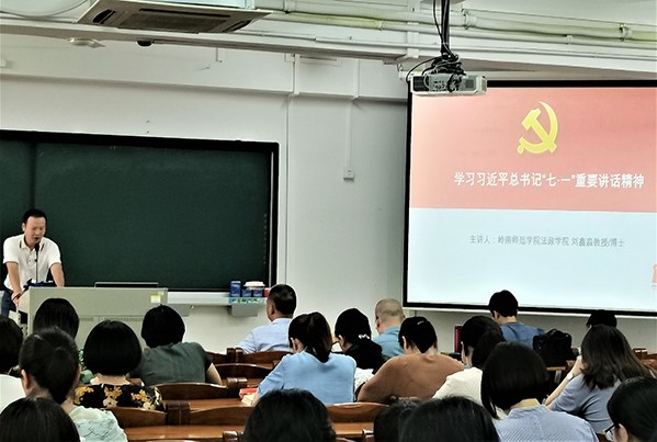 10月8日下午,外国语学院邀请法政学院主持行政全面工作的副院长刘鑫淼教授在教三705室举办了学习习近平总书记“七一”重要讲话精神宣讲会,会议由外国语学院党委书记陈永国主持,外国语学院全体教职工及部分学生党员参加本次会议。