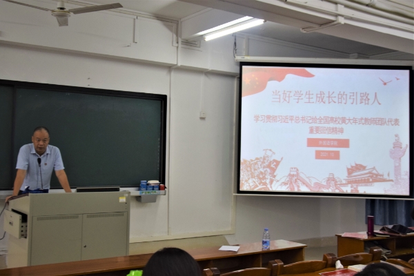 会上,陈永国书记带领大家认真学习了习近平总书记给全国高校黄大年式教师团队代表重要回信精神,并深入探讨了如何当好学生成长的引路人。陈永国指出,黄大年舍小家,为大家,对国家的责任与担当,对祖国的忠诚与感恩是他精神价值的核心,值得我们好好学习与践行。陈永国要求,全体教职工要深刻学习领悟黄大年的无私奉献的精神内涵,引领更多学子学习黄大年的为师风范。作为高校的老师,对学生,不但为授之以道,育之以德,还要甘为人梯,爱生如子,为党育人,为国育才。会上,全体教职工集体观看《黄大年》电影。