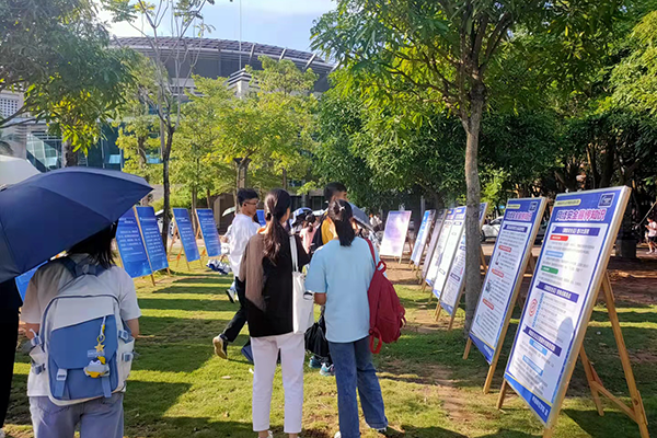 为深入贯彻落实习近平总书记关于网络强国的重要思想和对网络安全工作“四个坚持”重要指示精神,10月12日,学校在体育馆前举办了网络安全主题展览活动,外国语学院组织学生参与了此次活动。