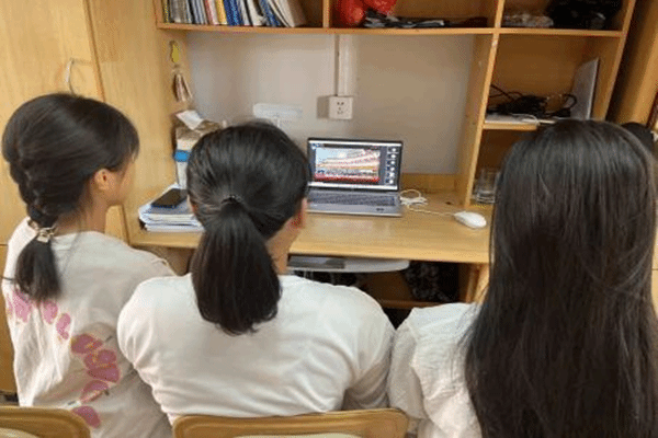 (同学们通过多种方式观看学习直播)