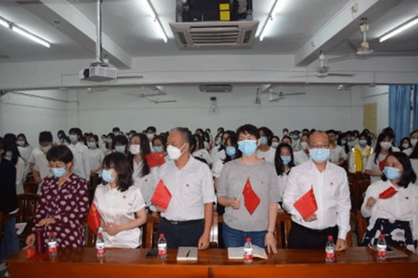 师生们穿戴整齐提前入场,他们精神振奋、热情高涨,现场座无虚席。随着大会的开幕,收看直播的师生们全体起立,手持国旗,高唱国歌,共同迎接庄严肃穆的时刻。随后,师生们为已故老一辈无产阶级革命家和革命先烈集体默哀。