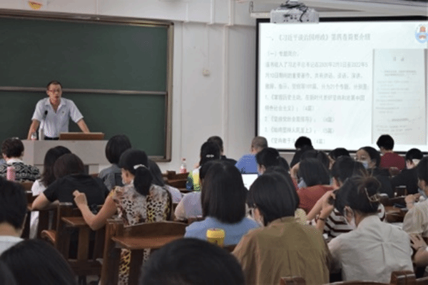 10月14日下午,外国语学院在教三505教室举行《习近平谈治国理政》第四卷专题宣讲会。学校党委理论宣讲团成员、马克思主义学院林兴副教授作专题宣讲,外国语学院全体教职工和学生党员出席宣讲会。宣讲会由学院党委书记陈永国主持。
