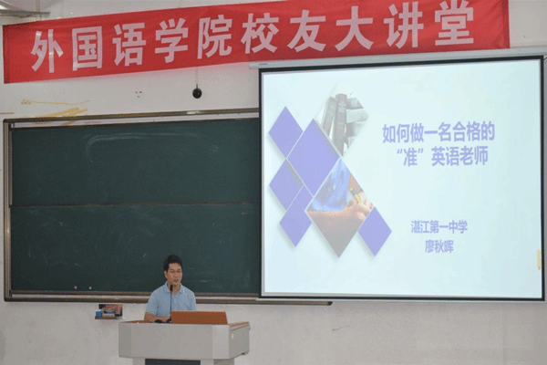 6月19日晚,外国语学院在教三611开展“名师进校园”校友大讲堂活动,邀请优秀校友现湛江一中名师廖秋晖老师以及湛江市第八小学王海洵副校长结合线上线下方式为2018级和2019级英语专业同学们开讲。