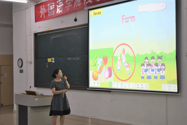 “教学看似一件很简单的事情,但其中蕴含了无限心血,需要每个教师花费心思去钻研。”理论武装头脑,实践更见真知。讲解过后,王海洵和三十名英语专业学生配合,模拟小学四年级英语教学课堂,从单词跟读、抢答游戏、分数计量、学习演唱英文歌曲等进行示范,并邀请两名学生上台互动,体验真实课堂教学现场,为实习生们展示一名教师应完成的优秀课堂教学活动。她还指出,课堂教学不仅是传授知识,教师应注重和孩子的充分交流与互动,了解认识男女学生的差异性,切实关注学生的课堂学习状态,进行个性化的精准教学,对不同的学生产生不同的教育方式。