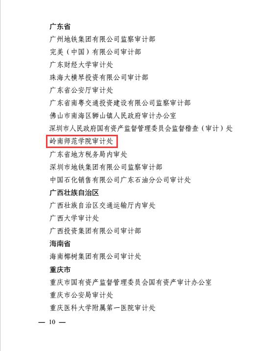 岭南师范学院审计处荣获“全国内部审计先进集体”荣誉称号