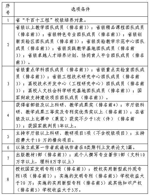 (4)任副高级职称不满5年,主持国家级课题并满足表2条件(除选项5)中的一项;或同时具备表2条件中的三项者。