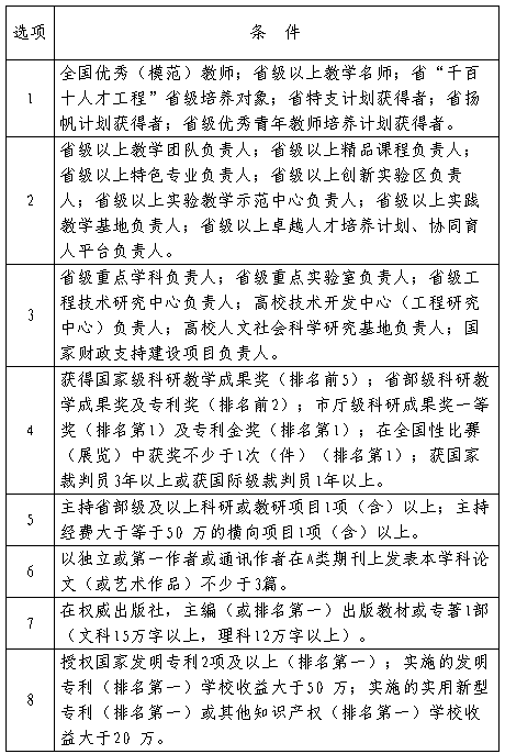 正高级职称教师,在国内外本学科领域有很高的学术造诣和学术声誉,在教学、科学研究、教学学术服务与管理等方面有突出成就和重要贡献,为本学科学术带头人,首聘以来年度考核合格及以上,并且具备下列条件之一者,可申请:
