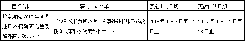 我校以下出国团组获省政府和省外办批准,现予公开。此前该团组信息已在我校校园网上进行过上报审批前公示。