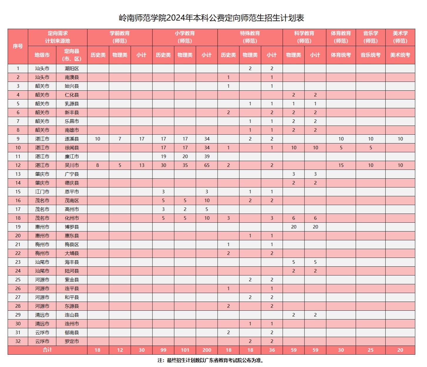 ·岭南师范学院2024年本科招生计划(院校代码:10579) 2024-06-19