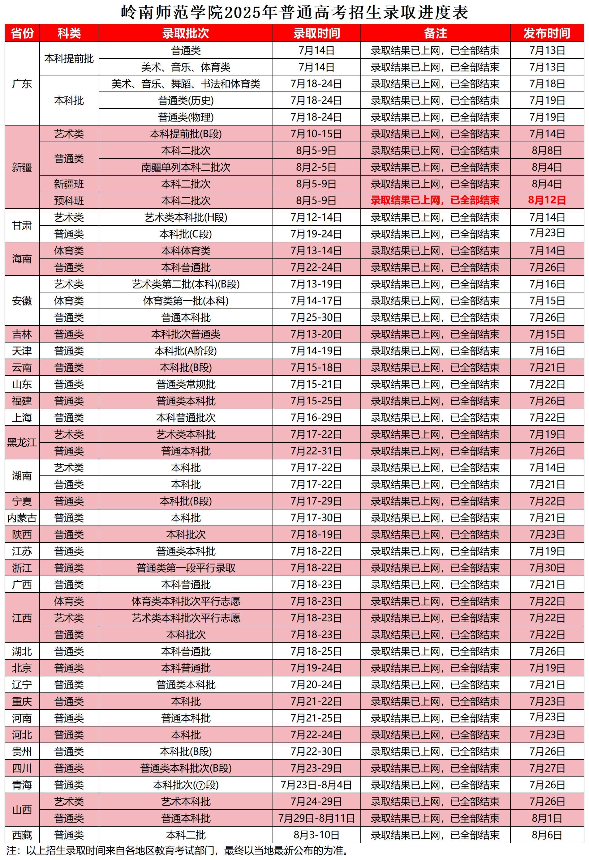 岭南师范学院2025年普通高考招生录取情况公告(更新8月12日)
