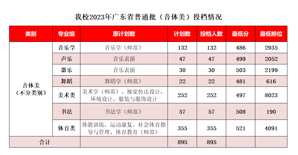 我校2023年广东省的本科批普通类于近日投档。我校生源充足,高分生源人数增幅明显,成绩喜人。具体投档情况如下: